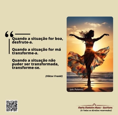 Gostei particularmente desta frase, porque ela chama-nos à atenção para a necessidade de encontrarmos sempre significado e propósito na nossa vida, e faz-nos acreditar que, mesmo nas circunstâncias mais difíceis, os humanos têm a capacidade de as transcender e escolher como reagir perante elas ❤️🤔